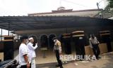 Polisi memberikan himbauan kepada warga untuk shalat di rumah saat patroli penegakan aturan Pembatasan Sosial Berskala Besar (PSBB) di salah satu masjid di kawasan Kalibata, Jakarta, Jumat (17/4). Patroli oleh petugas gabungan Polisi, TNI, dan Satpol PP tersebut dilakukan guna mencegah penyebaran COVID-19. (FOTO : Antara/Indrianto Eko Suwarso)