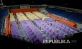Kamar-kamar tidur didirikan di lantai bermain PhilSports Arena di Pasig City, Metro Manila, Filipina, Jumat (17/4). Ditengah pandemi koronavirus yang sedang berlangsung, Tempat tersebut diubah menjadi fasilitas karantina untuk merawat pasien COVID-19 dengan kapasitas sekitar 150 tempat tidur (FOTO : EPA-EFE/ROLEX DELA PENA)