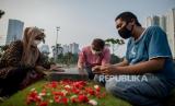 Sejumlah warga menggunakan masker saat berziarah ditengah pandemi COVID-19 di Tempat Pemakaman Umum (TPU) Menteng Pulo, Jakarta, Ahad (19/4). Menjelang bulan suci Ramadan, sejumlah umat muslim melakukan ziarah untuk mendoakan keluarganya yang telah meninggal tanpa menghiraukan imbauan penggunaan masker guna mencegah penyebaran COVID-19 (FOTO : Republika/Thoudy Badai)