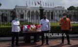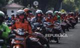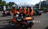 REPUBLIKA.CO.ID, JAKARTA -- Armada PT POS Indonesia (Persero) dan ojek daring dikerahkan untuk mendistribusikan bantuan sosial sembako di Jakarta, Senin (20/4).