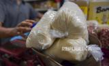 REPUBLIKA.CO.ID, JAKARTA -- Pedagang menyusun bungkusan gula di Pasar Senen, Jakarta, Selasa (21/4/2020). Pedagang di pasar itu menjual gula seharga Rp 19.000 per kilogram menjelang bulan Ramadhan.