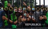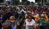 REPUBLIKA.CO.ID, JAKARTA -- Warga antre untuk mendapatkan nasi kotak dan masker di Markas Komando Gabungan Wilayah Pertahanan (Kogabwilhan) I, Jakarta, Selasa (21/4/2020).