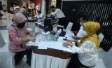 REPUBLIKA.CO.ID, JAKARTA -- Petugas melayani warga yang hendak menggadaikan barangnya di Kantor Pusat Pegadaian, Jakarta, Selasa (21/4).