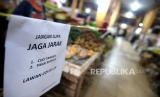 REPUBLIKA.CO.ID, YOGYAKARTA -- Pengelola Pasar Beringharjo memasang tanda jarak aman di los sayuran, Yogyakarta, Selasa (21/4). Pemasangan jarak 50 centimeter ini untuk menjaga jarak aman dari penularan virus corona. Selain itu, juga ada himbauan untuk menggunakan masker dan cuci tangan dengan sabun.