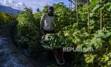 Seorang petani mengangkut buah timun yang baru saja dipanennya di Desa Baliase Boya, Sigi, Sulawesi Tengah, Selasa (21/4/2020). Petani mengeluhkan penurunan harga hampir semua jenis sayur mayur yang terus terjadi sejak Maret 2020 lalu sebagai dampak dari wabah COVID-19 yang mengakibatkan rendahnya permintaan (FOTO : ANTARA/basri marzuki)
