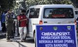 REPUBLIKA.CO.ID,BANDUNG -- Petugas memeriksa kendaraan berpenumpang saat penerapan Pembatasan Sosial Berskala Besar (PSBB) di perbatasan Bandung - Cimahi, Jalan Rajawali, Kota Bandung, Rabu (22/4).