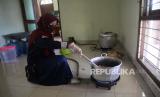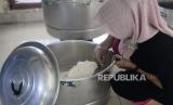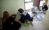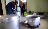 Juru masak menyiapkan menu makanan di Posko Dapur Umat, Jakarta Islamic Center, Jakarta, Rabu (22/4). Dewan Masjid Indonesia (DMI) melalui #Pemuda Remaja Masjid Bergerak membuka posko dapur umat dengan menyediakan minimal 200 paket makanan selama bulan Ramadhan yang akan disalurkan melalui masjid untuk masyarakat (FOTO : Prayogi/Republika)