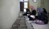 Panitia menyiapkan kotak dus yang akan digunakan untuk makanan di Posko Dapur Umat, Jakarta Islamic Center, Jakarta, Rabu (22/4). Dewan Masjid Indonesia (DMI) melalui #Pemuda Remaja Masjid Bergerak membuka posko dapur umat dengan menyediakan minimal 200 paket makanan selama bulan Ramadhan yang akan disalurkan melalui masjid untuk masyarakat (FOTO : Prayogi/Republika)