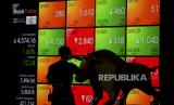 Layar menampilkan pergerakan saham di Bursa Efek Indonesia, Jakarta, Rabu (22/4/2020). Indeks Harga Saham Gabungan (IHSG) ditutup menguat 1,46 persen atau 65,64 poin ke level 4 (FOTO : Hafidz Mubarak A/ANTARA FOTO)