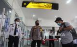 Petugas otoritas keamanan dan imigrasi mengawasi warga negara Indonesia (WNI) yang baru tiba dari Port Dickson Malaysia di terminal kedatangan Pelabuhan Internasional PT Pelindo I Dumai di Dumai, Riau, Rabu (22/4/2020). Pelabuhan Internasional Dumai akhirnya dibuka dan menerima kepulangan 162 WNI terdampak karantina (lockdown) pandemi COVID-19 di Malaysia setelah hampir satu bulan lebih pelabuhan internasional tersebut ditutup (FOTO : Antara/Aswaddy Hamid )
