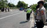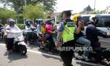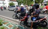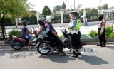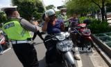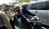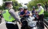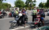 REPUBLIKA.CO.ID, YOGYAKARTA -- Aparat kepolisian Polresta Yogyakarta mengecek masker pengendara bermotor di perempatan titik nol Yogyakarta, Kamis (23/4).