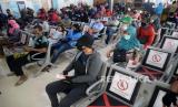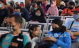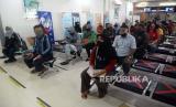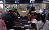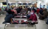 REPUBLIKA.CO.ID, JAKARTA -- Sejumlah calon penumpang antre untuk melakukan pembatalan tiket kereta di Stasiun Pasar Senen, Jakarta, Kamis (23/4).