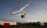 Otilia Maria Martinez Dos Santos, seorang seniman asal Portugal, tampil di sirkus Rony Roller yang diparkir di pinggiran Roma, Jumat (17/4). Sirkus keliling Rony Roller membuat penampilan terakhir pada 7 Maret 2020 lalu sebagai acara sirkus penutupan sebelum masa lockdown nasional di Italia sebagai upaya pencegahan penyebaran virus COVID-19 serta telah mengistirahatkan sebanyak 60 hewan sirkus dan tujuh anggota sirkus akibat COVID-19 (FOTO : AP)