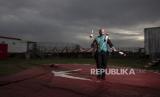 Alyn Valeriou menunjukkan aksinya saat bermain sirkus di Sirkus Romina Orfei, yang diparkir di San Nicola la Strada, Naples, Minggu (19/4). Sirkus keliling Rony Roller membuat penampilan terakhir pada 7 Maret 2020 lalu sebagai acara sirkus penutupan sebelum masa lockdown nasional di Italia sebagai upaya pencegahan penyebaran virus COVID-19 serta telah mengistirahatkan sebanyak 60 hewan sirkus dan tujuh anggota sirkus akibat COVID-19 (FOTO : AP)