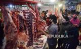 Jelang Ramadhan, pengunjung memadati kios daging sapi di Pasar Panorama, Kecamatan Lembang Kabupaten Bandung Barat, Kamis (23/4). Jelang ramadhan harga daging sapi naik dari Rp 110 (FOTO : Edi Yusuf/Republika)