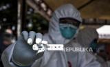Petugas kesehatan menunjukkan hasil Rapid Test Covid-19 saat penerapan Pembatasan Sosial Berskala Besar (PSBB) di Terminal Leuwipanjang, Kota Bandung, Kamis (23/4). Seluruh penumpang beserta awak bus yang turun di terminal Leuwipanjang khususnya yang berasal dari zona merah Covid-19 wajib menjalani pemeriksaan suhu tubuh, penyemprotan disinfektan dan Rapid Test Covid-19 guna memastikan kesehatannya dan mengantisipasi penyebaran Covid-19 (FOTO : ABDAN SYAKURA/REPUBLIKA)