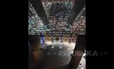 Suasana shalat Tarawih di Masjid Istiqlal pada tanggal 5 Mei 2019, sementara foto bawah menunjukkan suasana terkini dari posisi yang sama Kamis (23/4) saat masjid ditutup dari kegiatan Tarawih karena Pandemi Covid-19. (FOTO : Willy Kurniawan/Reuters)