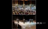 Foto Combo : Suasana Tarawih pertama pada Ramadhan 1440 H (kiri) dan suasana masjid Istiqlal yang tidak menyelenggarakan tarawih pertama Ramadhan 1441 H (kanan), Jakarta, Kamis (23/4). Masjid Istiqal meniadakan kegiatan shalat tarawih berjamaah dan sejumlah kegiatan yang melibatkan banyak orang pada Ramadhan 1441 H (FOTO : Prayogi/Republika)