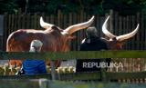 Pengunjung mengamati hewan di kebun binatang di Landau, Jerman, Rabu (22/4). Sejak 20 April 2020 kebun binatang di negara bagian Rhineland-Palatinate diizinkan untuk kembali dibuka di bawah aturan keamanan yang ketat untuk memperlambat pandemi penyakit COVID-19 yang sedang berlangsung (FOTO : EPA-EFE/RONALD WITTEK)