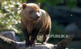 epa08376890 Seekor anjing hutan (Speothos venaticus) berdiri di kandangnya di kebun binatang, Landau, Jerman, Rabu (22/4). Sejak 20 April 2020 kebun binatang di negara bagian Rhineland-Palatinate diizinkan untuk kembali dibuka di bawah aturan keamanan yang ketat untuk memperlambat pandemi penyakit COVID-19 yang sedang berlangsung (FOTO : EPA-EFE/RONALD WITTEK)