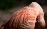 Flamingo Chili (Phoenicopterus chilensis) berdiri di kandangnya di kebun binatang, Landau, Jerman, Rabu (22/4). Sejak 20 April 2020 kebun binatang di negara bagian Rhineland-Palatinate diizinkan untuk kembali dibuka di bawah aturan keamanan yang ketat untuk memperlambat pandemi penyakit COVID-19 yang sedang berlangsung (FOTO : EPA-EFE/RONALD WITTEK)