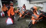 Pegawai PT POS Indonesia mengangkat bantuan sembako pemerintah yang akan didistribusikan di Kantor Pos Pulo Asem, Rawamangun, Jakarta, Jumat (24/4). Sebanyak 1,3 juta keluarga terdampak wabah covid 19 mendapatkan bantuan sembako presiden RI melalui Kementerian Sosial (FOTO : Prayogi/Republika)