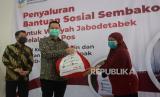 PT Pos Indonesia mendistribusikan bantuan sembako tersebut kepada warga di Kantor Pos Pulo Asem, Rawamangun, Jakarta, Jumat (24/4).