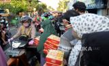 Ribuan nasi kotak dibagika kepada warga untuk berbuka sambil tetap menerapakan protokol kesehatan pandemi covid-19.