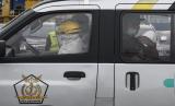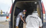 Warga Negara Indonesia (WNI), anak buah kapal Kapal Pesiar MV Arthania yang diduga positif COVID-19 (kanan) berada di dalam mobil ambulans di Pelabuhan JICT, Tanjung Priok, Jakarta, Jumat (24/4). Sebanyak 56 WNI tersebut akan dibawa menuju RS Darurat COVID-19 Wisma Atlet Kemayoran untuk diobservasi. (FOTO : ANTARA/Muhammad Adimaja)