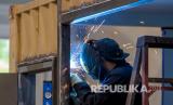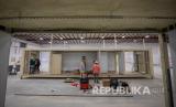 Pekerja BMarko Structures saat menyelesaikan kontainer yang diubah menjadi kamar rumah sakit portabel untuk merawat pasien COVID-19, di Lawrenceville, Georgia, Amerika Serikat, Jumat (23/4). Kontainer itu akan menjadi rumah sakit sementara dengan fasilitas 24 kamar di Macon, Georgia. Sebuah fasilitas yang serupa untuk pasien COVID-19 juga hampir selesai di kota Albany, Georgia selatan (FOTO : EPA-EFE / ERIK S. LESSER)