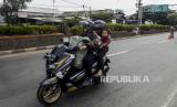Pengendara motor yang berboncengan saat penerapan pelarangan mudik di Jalur Pantura, Perbatasan Kabupaten Bekasi dengan Karawang, Kabupaten Bekasi, Jawa Barat, Sabtu (25/4). Hari kedua penerapan pelarangan mudik di jalur pantura masih banyak pengendara yang memaksakan untuk mudik dan tidak menerapkan jarak sosial (FOTO : Republika/Putra M. Akbar)