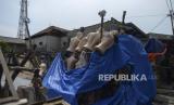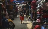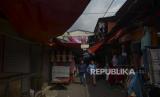 Suasana pasar tanah yang sepi pengunjung pada hari kedua dibulan suci Ramadan akibat pandemi COVID-19, Jakarta, Ahad (26/4). Menurut pedagang, pada bulan ramadan kali ini pendapatan sejumlah pedangan mengalami penurunan hingga 90 persen yang biasanya pada bulan ramadan mampu menghasilkan 2 juta hingga 5 juta perhari kini hanya mampu mendapatkan 300 ribu perhari (FOTO : Republika/Thoudy Badai)