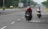 Pengendara motor melintas di jalur Pantura Lohbener, Indramayu, Jawa Barat, Ahad (26/4/2020). Sejak diberlakukannya larangan mudik oleh pemerintah pada Jumat (24/4), arus lalu lintas di jalur pantura dari arah Jakarta menuju Jawa Tengah terpantau Lengang (FOTO : ANTARA / Dedhez Anggara)