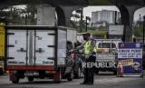 Petugas kepolisian memeriksa kendaraan di pos pemeriksaan Pembatasan Sosial Berskala Besar (PSBB) di Gerbang Tol Cileunyi, Kabupaten Bandung, Selasa (28/4). Penindakan berupa pemeriksaan surat kendaraan, surat tugas serta mengarahkan kendaraan untuk memutar balik tersebut merupakan tidak lanjut kebijakan larangan penggunaan kendaraan umum dan kendaraan bermotor pribadi untuk mudik (FOTO : ABDAN SYAKURA/REPUBLIKA)