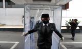 Wali Kota Bogor Bima Arya keluar dari bilik disinfektan saat menuju ruang pelantikan pejabat struktural di lingkungan Pemerintah Kota Bogor di Ruang Paseban Sri Baduga, Balaikota Bogor, Jawa Barat, Selasa (28/4/2020). Wali Kota Bogor Bima Arya dengan menggunakan masker dan sarung tangan kembali bertugas normal dan memimpin jalannya pemerintahan setelah dinyatakan sembuh total dari virus Corona (COVID-19) (FOTO : Antara/Arif Firmansyah)