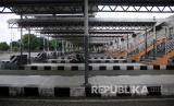 Petugas melintas di Terminal Purabaya, Bungurasih, Sidoarjo, Jawa Timur, Selasa (28/4/2020). Pengelola Terminal Purabaya mengosongkan semua bus Antar Kota Dalam Provinsi (AKDP) dan Antar Kota Antar Provinsi (AKAP) terkait adanya larangan operasional sementara bus saat penerapan Pembatasan Sosial Berskala Besar (PSBB) di Kota Surabaya, Kabupaten Sidoarjo, dan Kabupaten Gresik guna untuk mencegah penyebaran virus corona (COVID-19). (FOTO : Antara/Umarul Faruq)