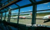 Sejumlah pesawat dari beberapa maskapai penerbangan diparkir di Apron Bandara El Tari Kupang, NTT,Selasa (28/4/2020). Setelah pemerintah melarang penerbangan khusus angkutan penumpang mencegah penyebaran COVID-19 aktivitas di satu-satunya bandara internasional di NTT itu tampak sepi. (FOTO : Antara/Kornelis Kaha)