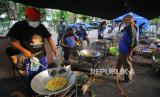 REPUBLIKA.CO.ID, SURABAYA -- Tim dari Taruna Siaga Bencana (Tagana) memasak makanan untuk dibagikan kepada warga di dapur umum PSBB Jatim di Makodam V/Brawijaya, Surabaya, Jawa Timur, Selasa (28/4/2020).