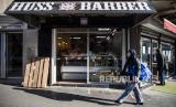 Seorang wanita berjilbab berjalan di depan toko kue Aljazair disat sebelum waktu berbuka puasa di pasar Arab daerah Porte de Montreuil di Paris, Prancis Ahad (26/4). Mayoritas penduduk di sekitar daerah Porte de Montreuil, Paris adalah Muslim Arab dari Utara Afrika, Muslim di seluruh Prancis pada tahun ini tidak dapat mengikuti kegiatan berdoa dan beribadah bersama akibat ditutupnya masjid karena pandemi COVID-19. (FOTO : EPA)