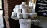 Madison Chop House Grille menawarkan tisu toilet gratis untuk pelanggan di Madison, Georgia, AS, Senin (27/4). Steak yang terletak di distrik bersejarah Madison sedang bersiap untuk beralih ke layanan di tempat (FOTO :  AP / John Bazemore)
