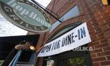 Pelanggan mengambil pesanannya di Waffle House, Brookhaven, Georgia, AS,  Senin (27/4). Beberapa restoran  dibuka kembali setelah lockdown imbas pandemi virus corona dicabut (FOTO : Steve Schaefer / Atlanta Journal - Constituti)
