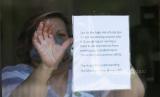 Manajer Madison Chop House Grille, Mary Spoto memasang tanda himbauan di pintu meminta orang-orang yang sakit untuk tidak masuk di Madison, Georgia, AS, Senin (27/4). Gubernur Brian Kemp telah mengurangi pembatasan pada restoran dan bisnis lain selama pencegahan penyebaran dari virus corona (FOTO :  AP / John Bazemore)
