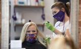 Tonya Muckenfuss menata rambut Brandee Anderson di Toko Kecantikan Roots Selatan, Augusta, Georgia, USA, Jumat (24/4). Toko dibuka setelah lockdown imbas pandemi virus corona (FOTO : Michael Holahan / The Augusta Chronicle via A)