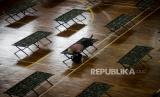 Suasan Gelanggang Olahraga (GOR) Ciracas yang dijadikan tempat penampungan sementara penyandang masalah kesejahteraan sosial (PMKS) di Ciracas, Jakarta Timur, Rabu (29/4). Pemerintah Provinsi DKI Jakarta menyiapkan seluruh GOR di Jakarta sebagai tempat penampungan PMKS yang terjaring setelah dilakukan rapid test COVID-19 sebagai upaya mengantisipasi penyebaran COVID-19 (FOTO : Republika/Thoudy Badai)