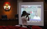Wartawan memotret saat berlangsungnya sidang vonis dengan terdakwa bekas Anggota DPR Fraksi PAN Sukiman, via Video Conference antara Pengaadilan Tipikor dan Gedung KPK C1, Jakarta, Rabu (29/4/2020). Sukiman divonis 6 tahun penjara dan denda 500 juta subsider 1 tahun, karena terbukti menerima uang Rp2,65 miliar dan USD22 ribu dari Total Rp4,41 miliar yang dijanjikan oleh Pelaksana Tugas Kepala Dinas Pekerjaan Umum Kabupaten Pegunungan Arfak, Provinsi Papua Barat Natan Pasomba untuk meloloskan alokasi dana perimbangan sebesar Rp49,9 miliar di APBN-P 2017 dan Rp79,9 miliar di APBN 2018 (FOTO : Antara/Reno Esnir)