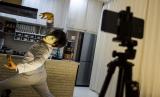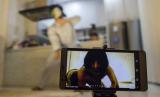 Seniman tari menunjukkan koreografi secara daring pada peringatan Hari Tari Sedunia Choreo-Instant Stay At Home di Bandung, Jawa Barat, Rabu (29/4/2020). (FOTO : Antara/Novrian Arbi)