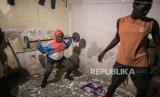 Keluarga Bara Tambedou berlatih di rumah setelah berbuka puasa pada hari pertama bulan suci Ramadhan, di Dakar, Senegal, Sabtu (25/4). Tahun ini keluarga Bara Tambedou merayakan Ramadhan di rumah (FOTO : AP)