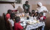 Keluarga Bara Tambedou berbuka puasa pada hari pertama Ramadhan, di Dakar, Senegal, Sabtu (25/4). Tahun ini keluarga Bara Tambedou merayakan Ramadhan di rumah (FOTO : AP)