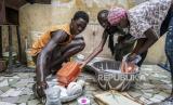Ngone, saudara ipar Bara Tambedou memasak makan sahur untuk keluarga pada hari pertama Ramadhan di Dakar, Senegal, Sabtu (25/4). Tahun ini keluarga Bara Tambedou merayakan Ramadhan di rumah (FOTO : AP)