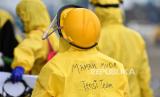 Petugas dari Kantor Kesehatan Pelabuhan (KKP) Kelas I Tanjung Priok mengenakan APD saat melaksanakan rapid test atau pemeriksaan cepat COVID-19 terhadap Warga Negara Indonesia (WNI) yang menjadi anak buah kapal Pesiar MV Carnival Splendor saat tiba di Pelabuhan JICT, Tanjung Priok, Jakarta, Kamis (30/4/2020). Sebelum dibawa menuju hotel untuk dilakukan isolasi mandiri selama satu minggu, 375 WNI tersebut terlebih dahulu menjalani rapid test (FOTO : ANTARA/NOVA WAHYUDI)